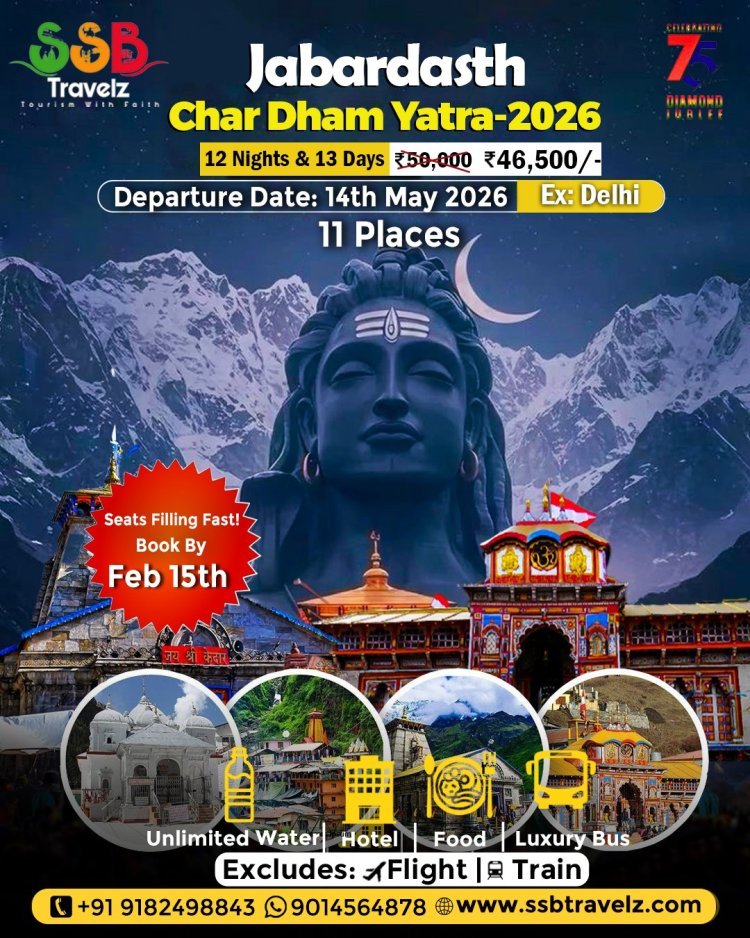 Embark on the Divya Char Dham Tirth Yatra, a divine journey through sacred lands filled with devotion, faith, and spiritual energy. This pilgrimage offers darshan at revered temples and holy sites, creating an experience of inner peace and spiritual connection.